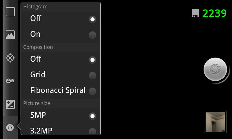 ● Shoot better photos with 2 different on-screen camera composition aids: grid and Fibonacci spiral.